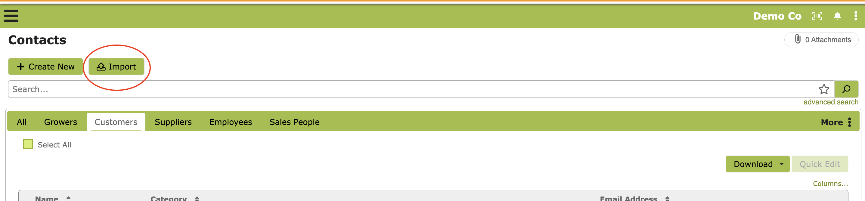 Once contacts have been updated with the correct categories you can import them back to Vinsight using the Import function: